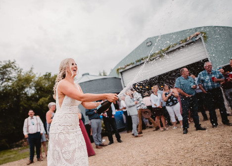 This wedding in Fairview, AB perfectly mixed rustic and boho vibes. It had everything. From a nearly 100 year old barn, blooming canola, a bar built from a grain bin, more florals than I ever seen, macramé accents, pampas grass, a million little decor details, fireworks and alllll the laughter, tears, soulful hugs, kisses, and moments full of love... Topped off with a pretty epic party in the best lit quonset I've ever seen.